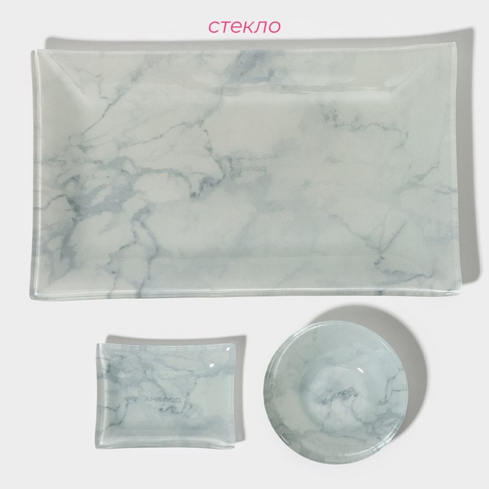 Набор для суши 3предм. соусники 8*2см 8*6см + подставка 25*15*2см Марбел