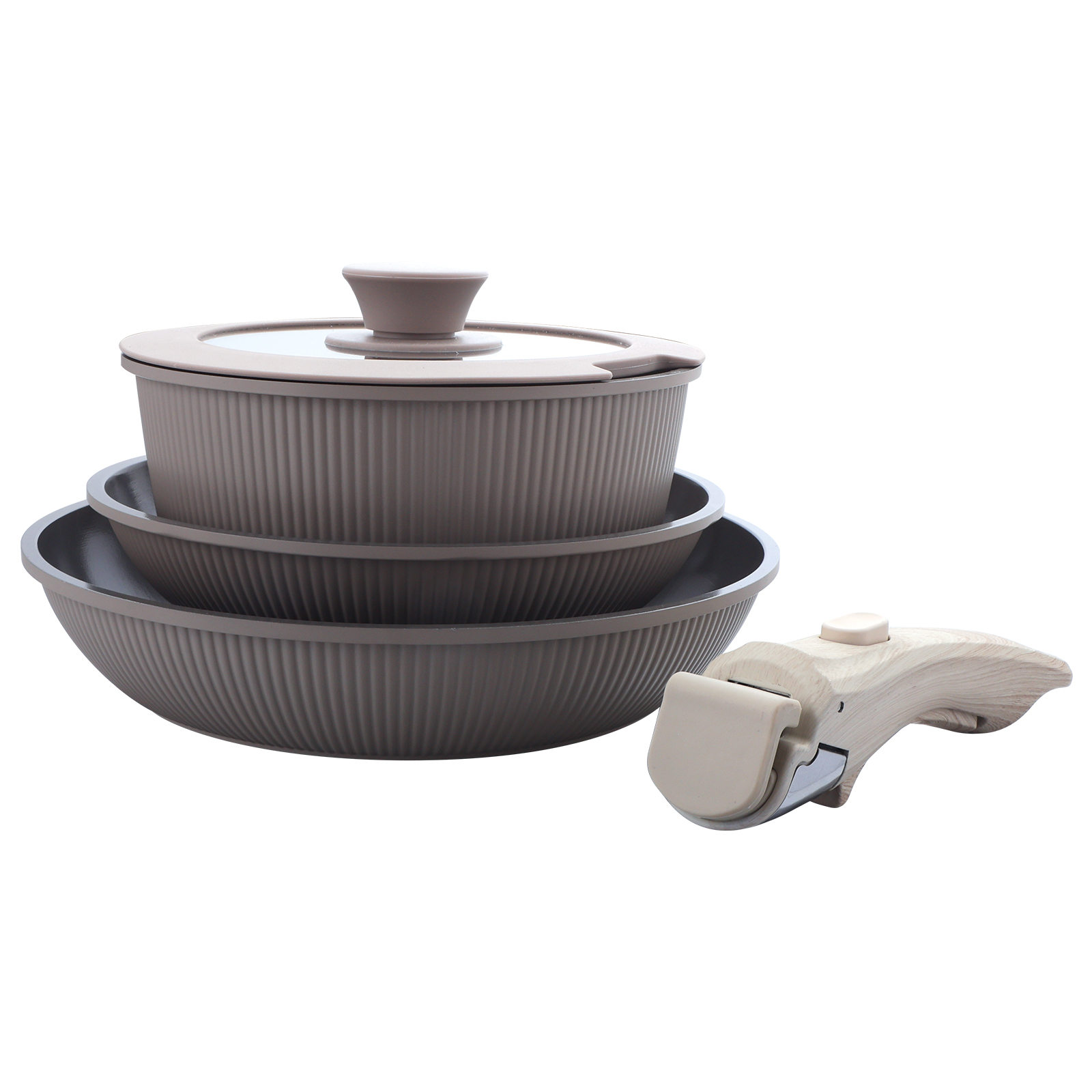 Набор посуды 5пр литой антипригарный (сковорода 20см+26см+ковш18см+крышка+ручка) Дюна