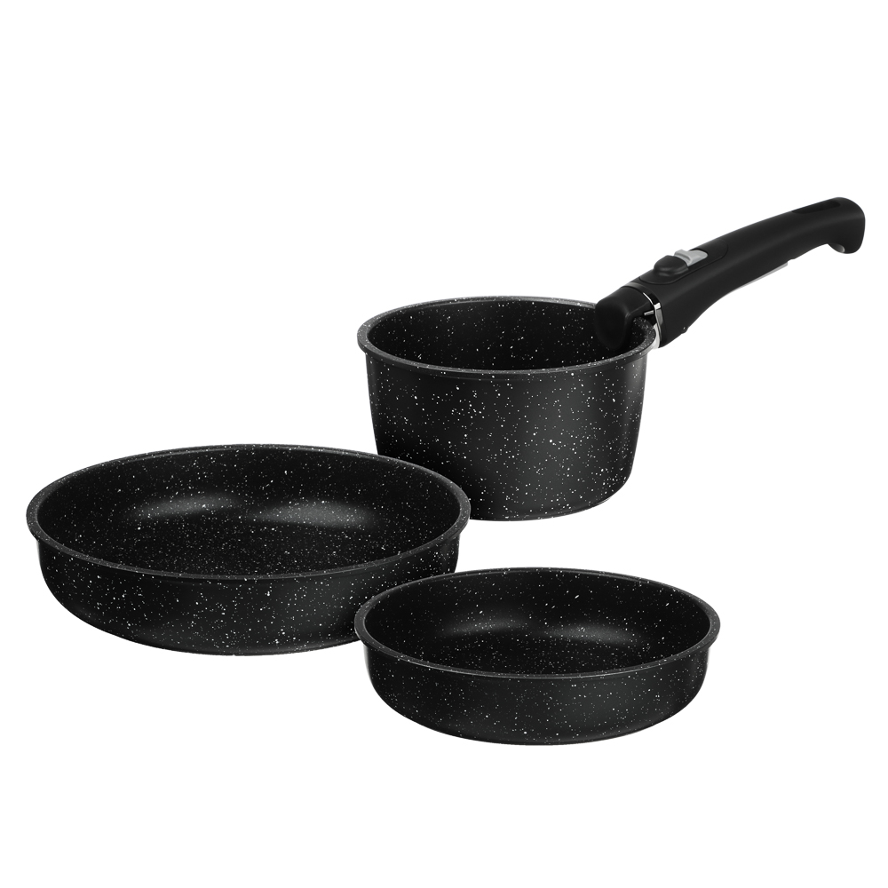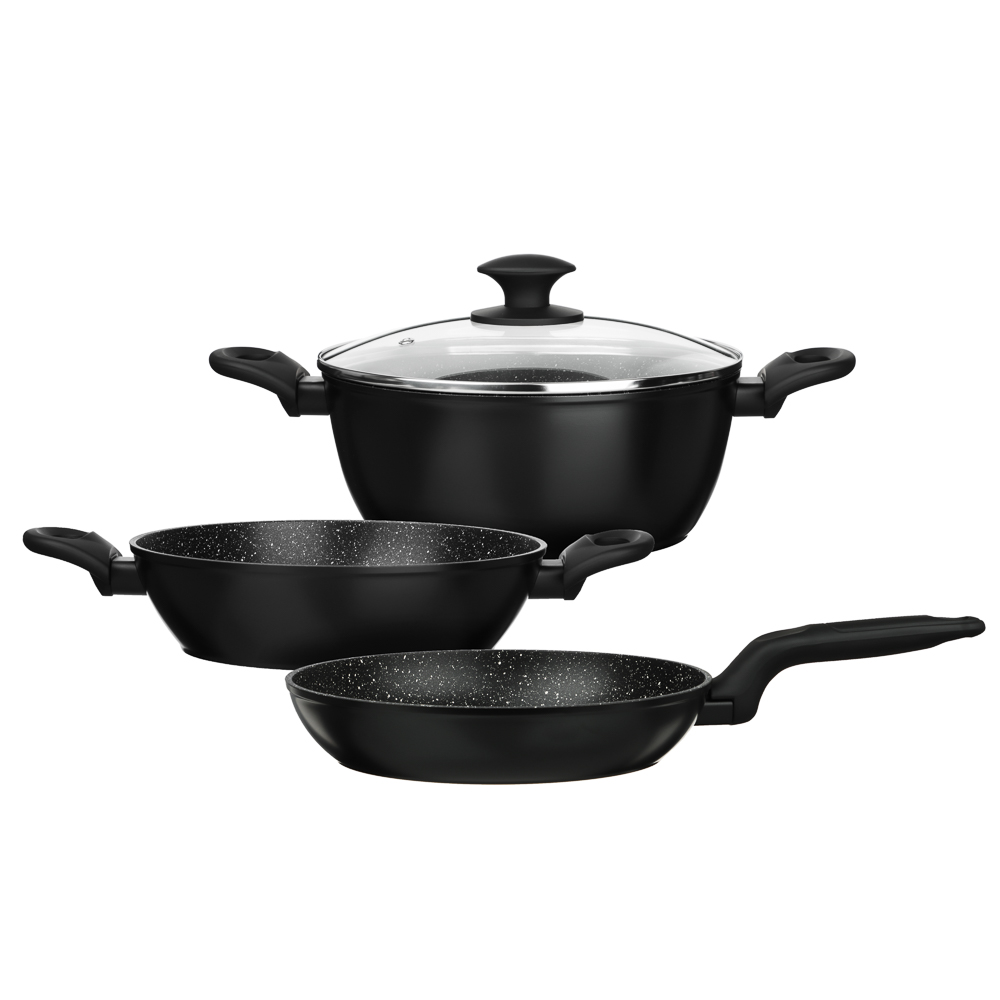 Набор посуды 3пр литой алюминий антипригарный темный Мрамор Кухмара