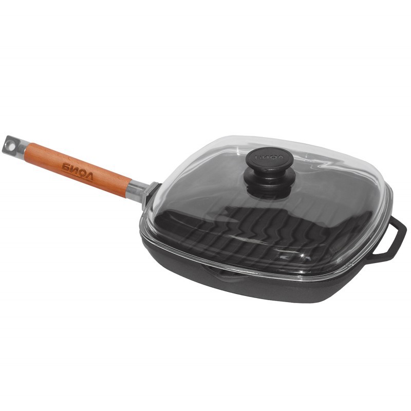 Сковорода Гриль 26*26см чугун с крышкой съемная ручка Биол
