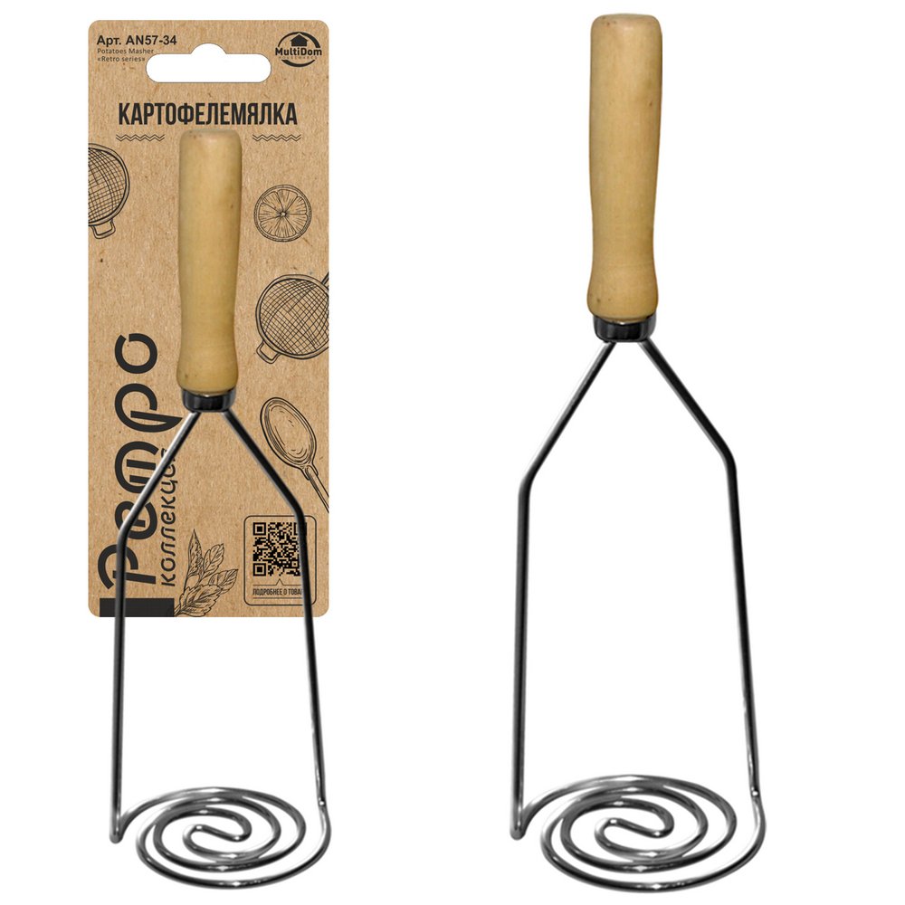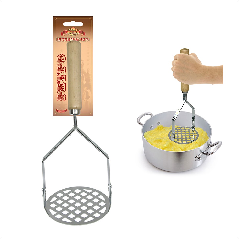 Картофелемялка нерж деревянная ручка Ретро Мультидом