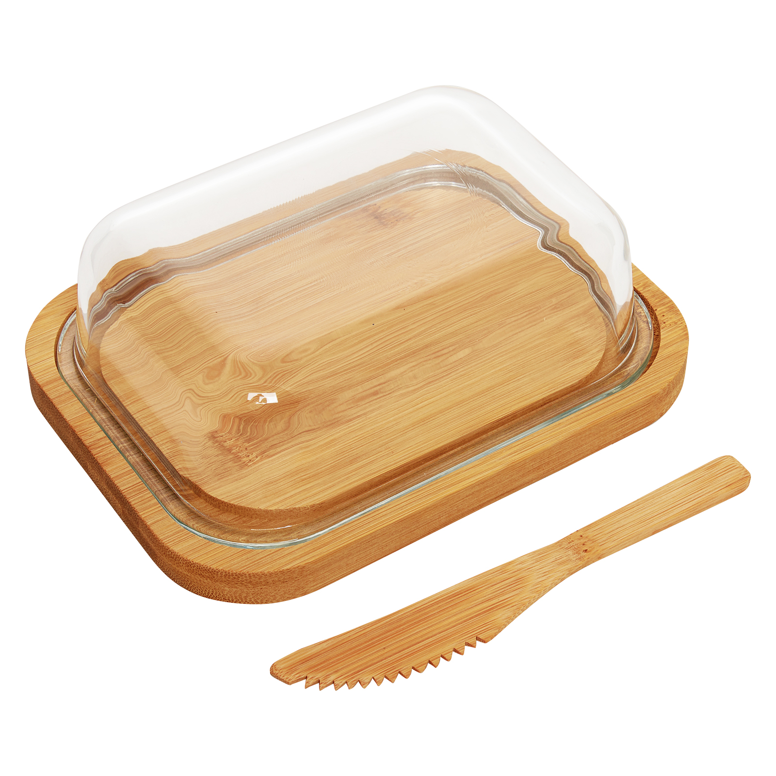 Масленка 370мл стекло с подставкой и ножом бамбук Студио