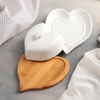 Масленка фарфор на деревянной подставке 20,5*12*8см