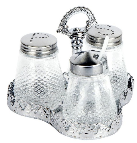 купитьНабор для специй 3пр Соль+перец+салфетница нерж +стекло Аппетит