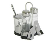 купитьНабор для специй 4пр Соль+перец+горчица+салфетница стекло+металл Домина