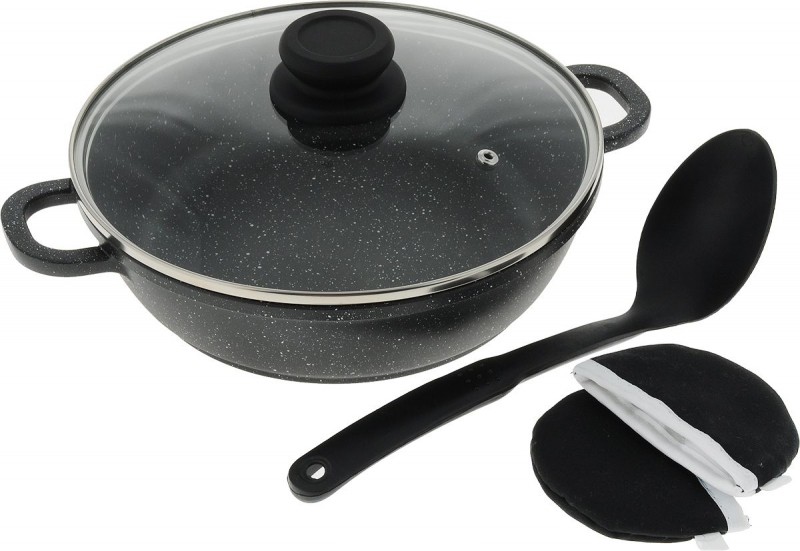 Сковорода Вок 28см литая антипригарная без крышки Гранит